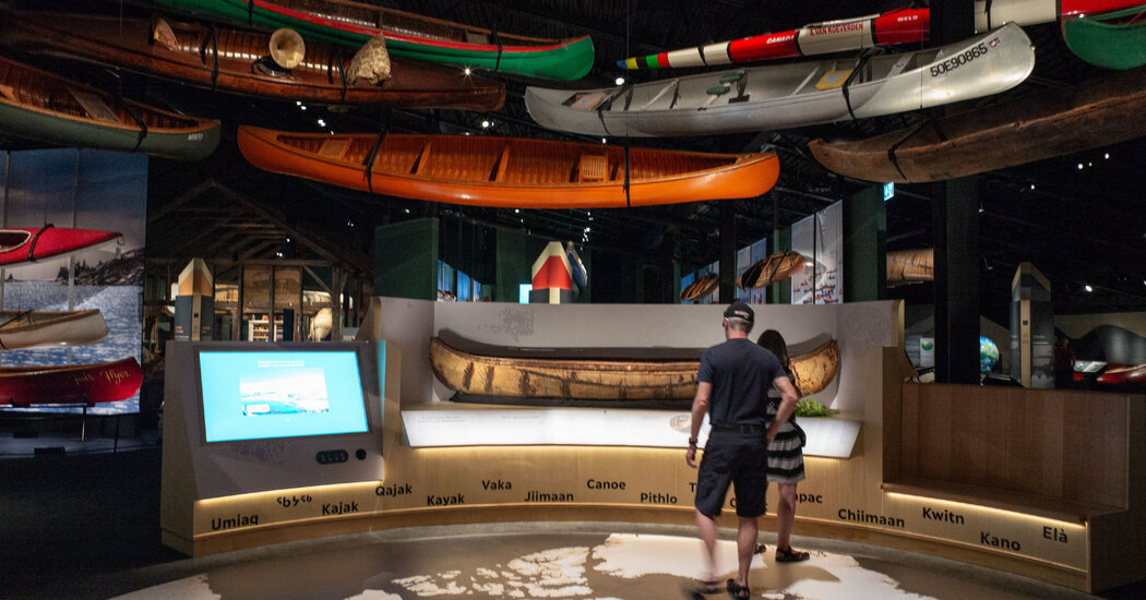 As we walked through the new building, Mr. Ward emphasized that canoes are far from unique to Canada, which the exhibits highlight. But they are well suited to Canada’s abundance of freshwater rivers and lakes. They were a vital form of transportation for Indigenous people, as were kayaks (which the museum also holds and displays). The first Europeans who moved into their traditional lands soon adopted and relied on them, too.