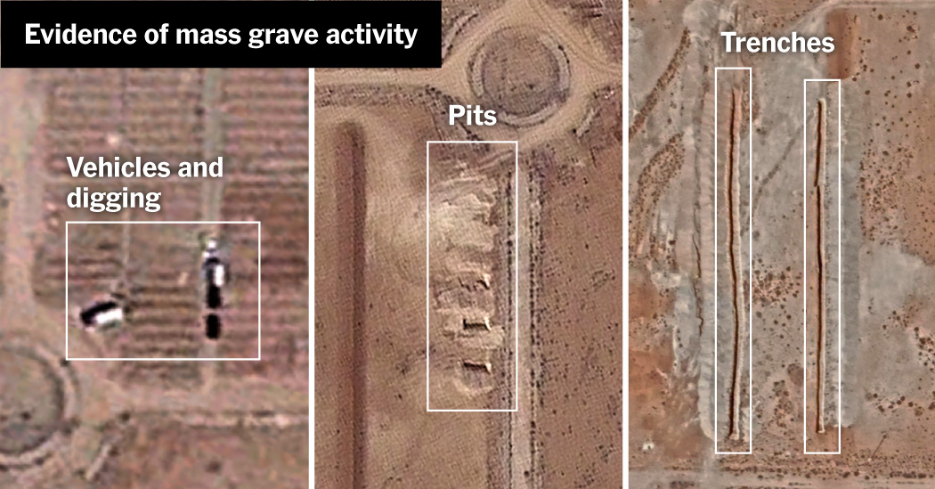 Satellite images analyzed by The Times confirmed signs of mass grave activity — earth disturbances, large vehicles, widespread digging and excavation — in the area described by Mr. Naifeh.